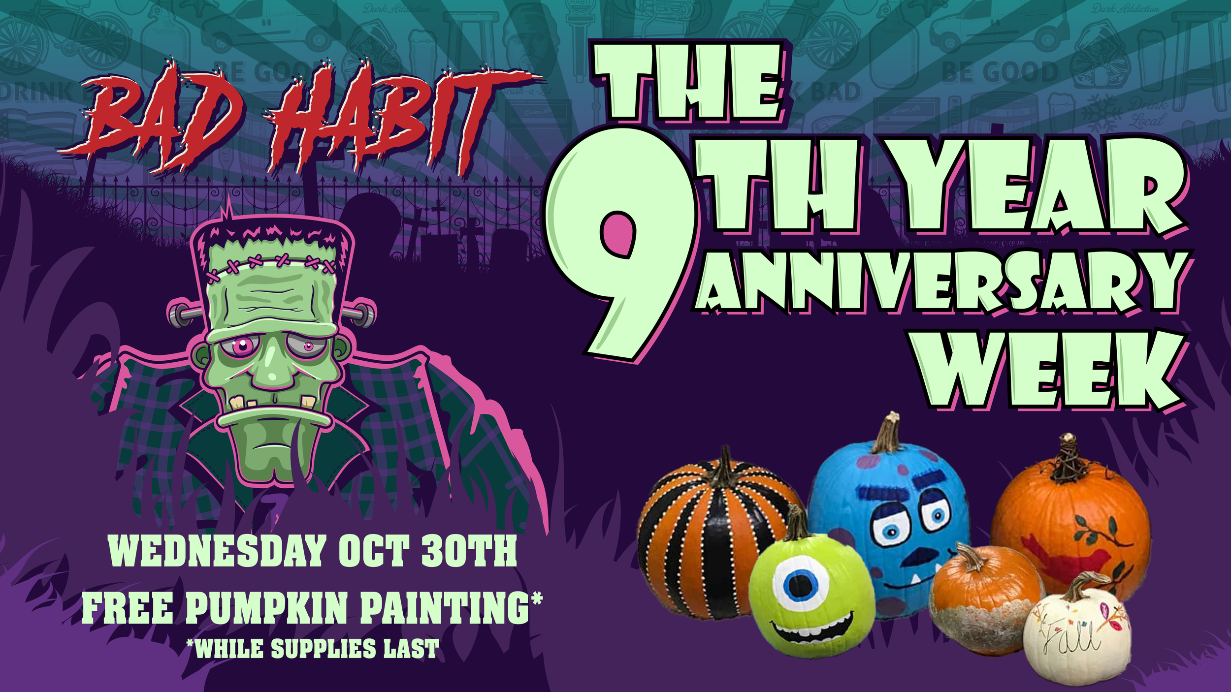 FREE Pumpkin Painting Wednesday, October 30, 2024 5:00 PM 8:00 PM Bad Habit Brewing Company 25 College Avenue North Saint Joseph, MN, 56374 United States (map) Google Calendar ICS