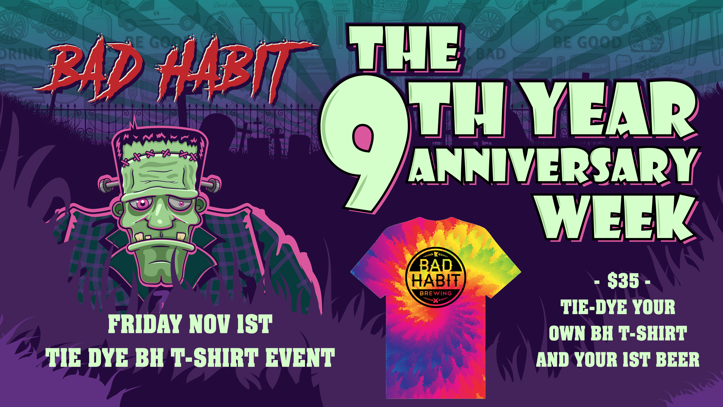 Tie-Dye T-Shirt Event Friday, November 1, 2024 6:00 PM 9:00 PM Bad Habit Brewing Company 25 College Avenue North Saint Joseph, MN, 56374 United States (map) Google Calendar ICS