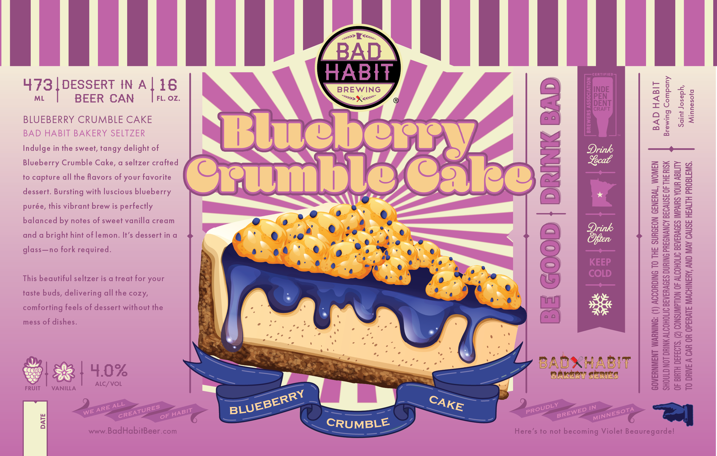 Back to All Events Blueberry Crumble Cake release Friday, January 31, 2025 2:00 PM 10:00 PM Bad Habit Brewing Company 25 College Avenue North Saint Joseph, MN, 56374 United States (map) Google Calendar ICS