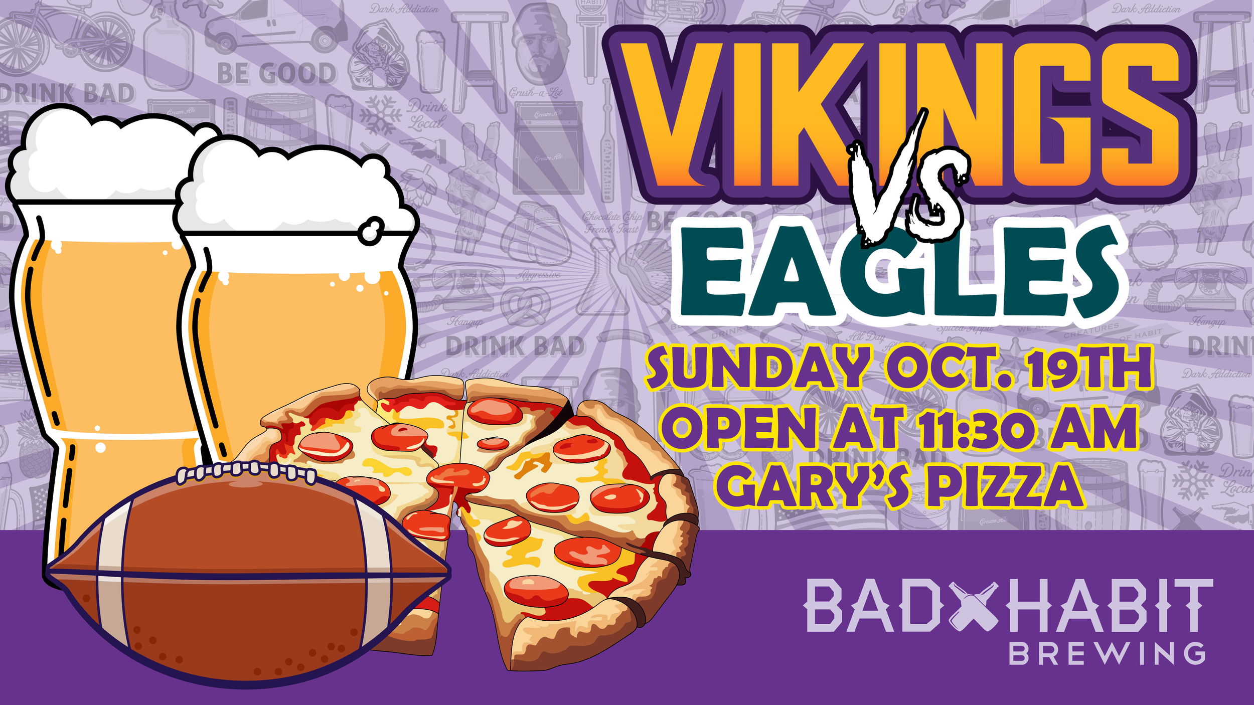 Brewer's Lounge: MN Vikings Game Sunday, October 19, 2025 12:00 PM 3:30 PM Bad Habit Brewing Company 25 College Avenue North Saint Joseph, MN, 56374 United States (map) Google Calendar ICS