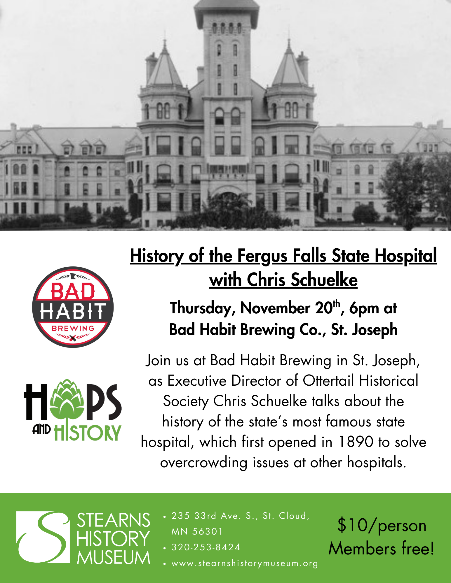 Back to All Events Hops & History Thursday, November 20, 2025 6:00 PM 8:00 PM Bad Habit Brewing Company 25 College Avenue North Saint Joseph, MN, 56374 United States (map) Google Calendar ICS