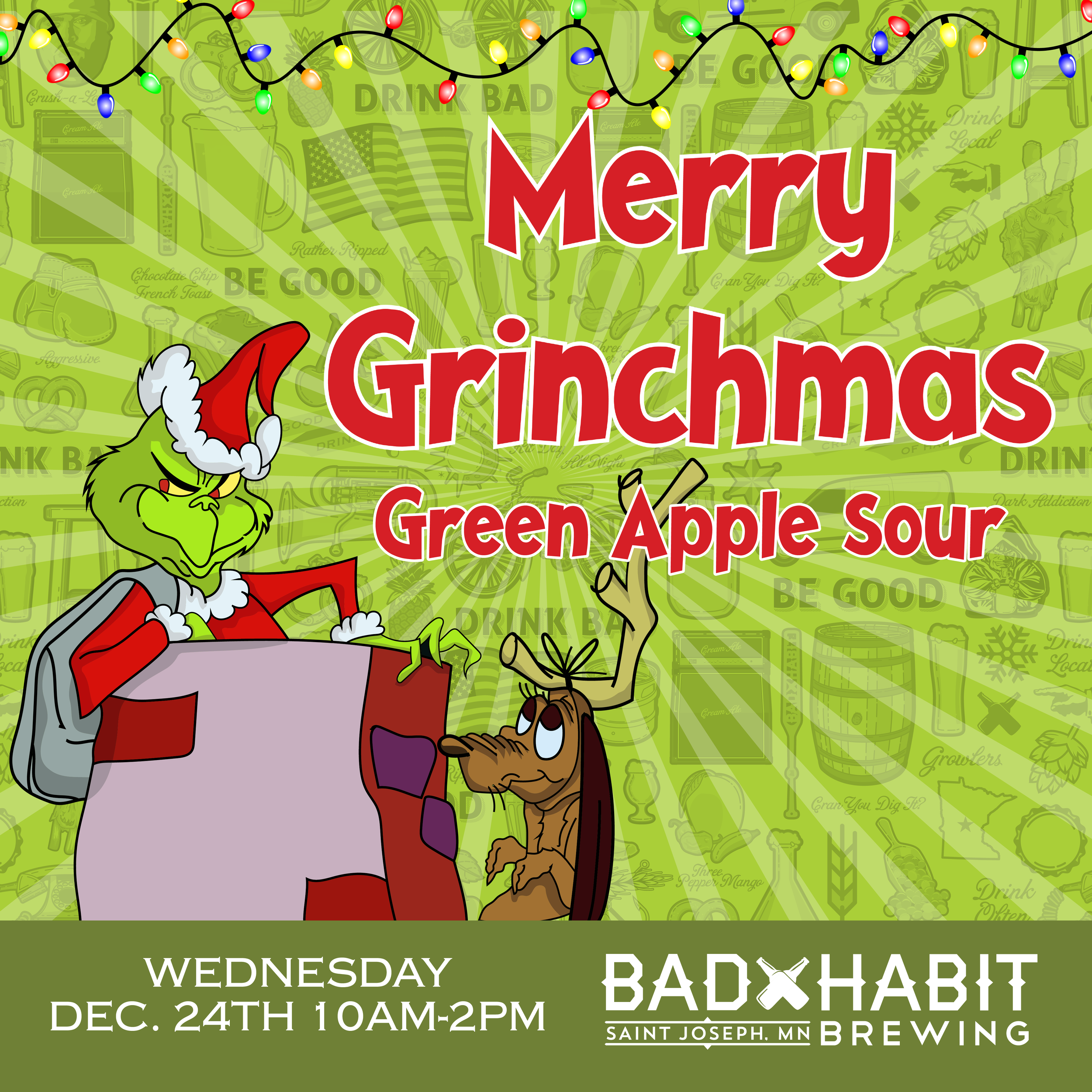 Back to All Events Merry Grinchmas Wednesday, December 24, 2025 10:00 AM 2:00 PM Bad Habit Brewing Company 25 College Avenue North Saint Joseph, MN, 56374 United States (map) Google Calendar ICS