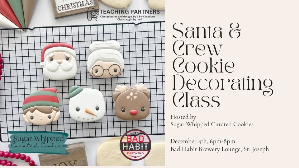 Back to All Events Santa & Crew Cookie Decorating Class Thursday, December 4, 2025 6:00 PM 8:00 PM Bad Habit Brewing Company 25 College Avenue North Saint Joseph, MN, 56374 United States (map) Google Calendar ICS