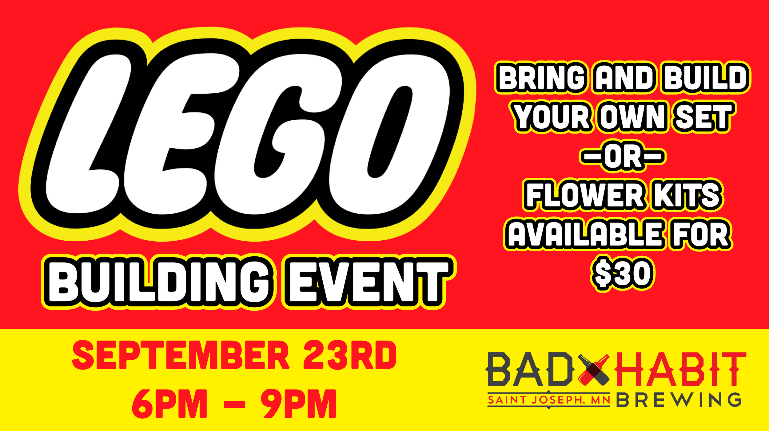 Lego Event Tuesday, September 23, 2025 6:00 PM 9:00 PM Bad Habit Brewing Company 25 College Avenue North Saint Joseph, MN, 56374 United States (map) Google Calendar ICS